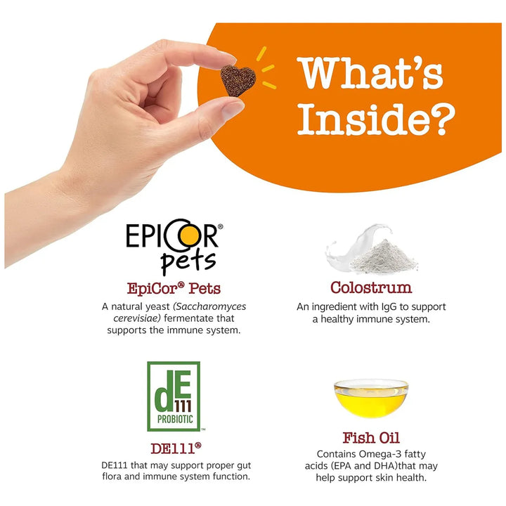 Los ingredientes actúan en sinergia: el Omega 3 reduce la inflamación de la piel, mientras los probióticos equilibran su intestino, clave para evitar alergias. El Epicor Pets estimula sus defensas, creando una barrera contra irritantes externos. ¡Resultados visibles desde la primera semana!