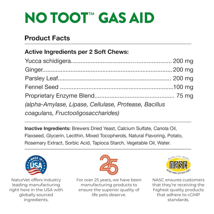 NaturVet Ayuda Sin Gas Toot para perros es un suplemento masticable formulado por veterinarios, diseñado para aliviar los gases ocasionales y promover una digestión saludable. Con ingredientes naturales como hinojo, yuca y jengibre, este producto no solo es efectivo, sino que también es delicioso para tu mascota.