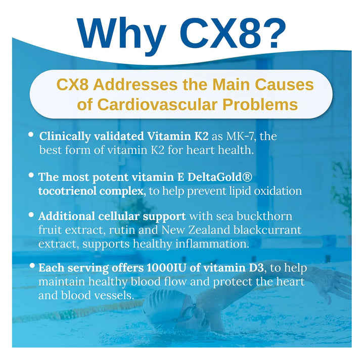 Nuestra fórmula actúa en tres fases clave: primero, la vitamina K2 MK7 moviliza el calcio hacia los huesos, evitando que se acumule en las arterias. Luego, la vitamina D3 optimiza la absorción de calcio y fortalece el sistema inmunológico. Finalmente, los tocotrienoles reducen la inflamación, mientras que el espino cerval de mar y la nattoquinasa mejoran la circulación y la presión arterial.
