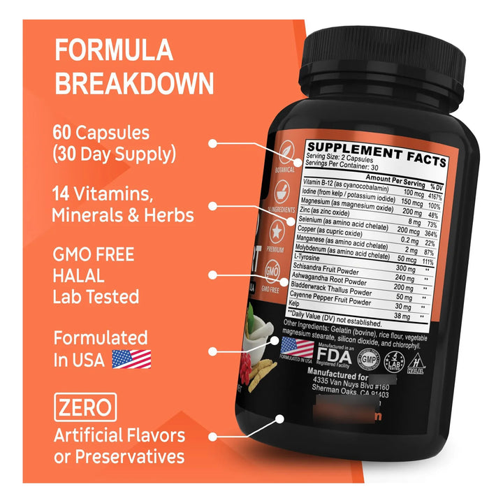 - 🌿 Ingredientes Naturales: Formulado con algas kelp, ashwagandha y más, sin ingredientes artificiales.