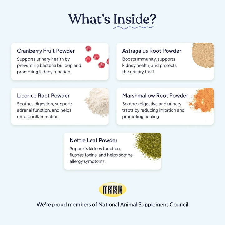 Este potente suplemento no solo alivia, sino que previene. La combinación de arándano, conocido por sus propiedades antibacterianas, y la D-manosa, que evita que las bacterias se adhieran a las paredes de la vejiga, crea un escudo protector. Ideal para perros mayores o aquellos con sensibilidad urinaria, es el aliado perfecto para mantenerlos cómodos y llenos de energía.