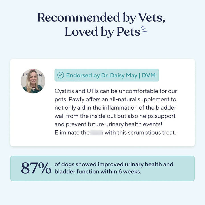 ¿Tu perro sufre de molestias urinarias o infecciones recurrentes? Imagina verlo feliz, activo y libre de incomodidades. Nuestro Suplemento UTI Pawfy con Arándano y D-manosa está diseñado para transformar la salud de su tracto urinario y vejiga, dándole la vitalidad que merece. 🐾