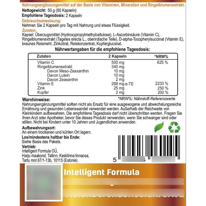 - 10 mg de luteína y 2 mg de zeaxantina para filtrar la luz dañina 👁️