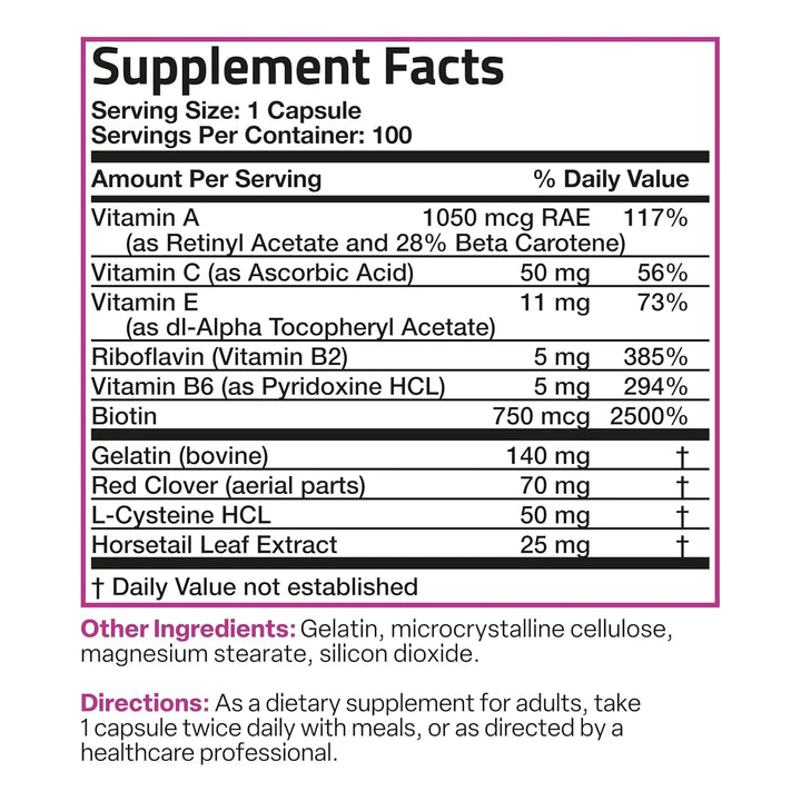 - Fórmula de potencia superior: Concentración óptima de biotina para resultados visibles. 💊