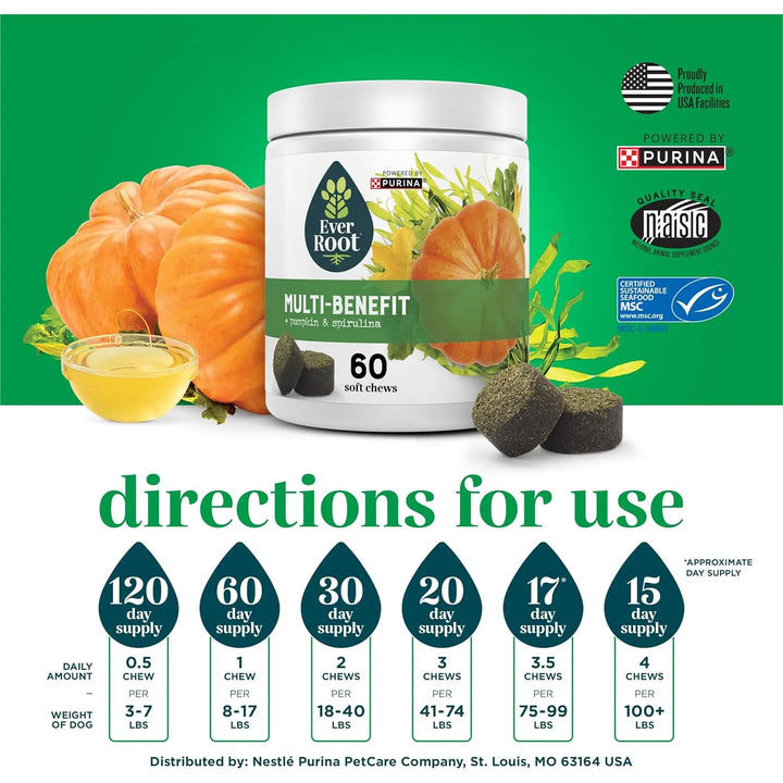 Estos suplementos están diseñados para actuar desde la primera dosis. La combinación de ingredientes naturales trabaja en sinergia para mejorar la salud general de tu perro. La espirulina estimula su sistema inmunológico, el omega 3 nutre su piel y pelaje, y la calabaza regula su digestión. Todo en un formato masticable que facilita la administración y hace que la hora del suplemento sea un momento de disfrute.