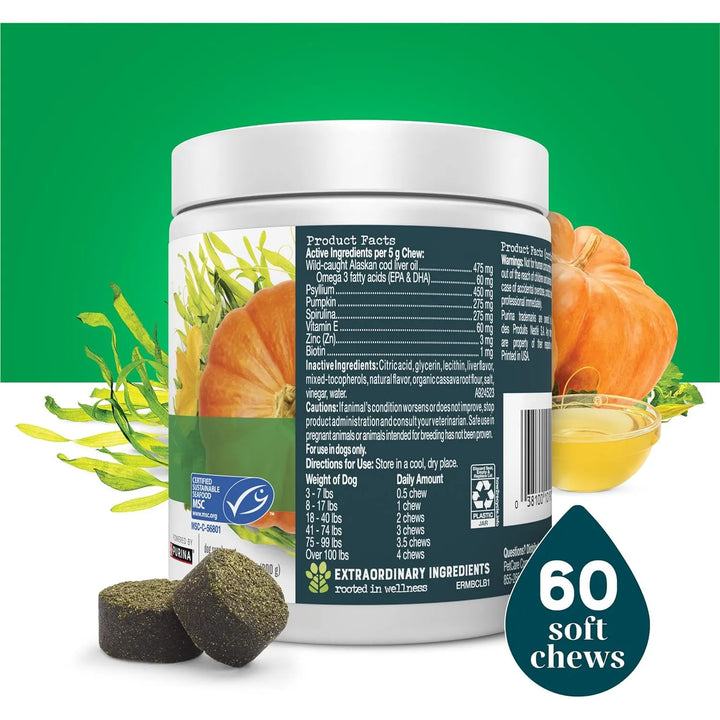 ¿Sabías que la espirulina en estos suplementos ayuda a fortalecer el sistema inmunológico de tu perro? Además, el omega 3 del aceite de hígado de bacalao no solo mejora su piel y pelaje, sino que también lo mantiene feliz y activo. Y con la calabaza como ingrediente clave, tu mascota tendrá una digestión suave y regular. ¡Todo en un solo producto!