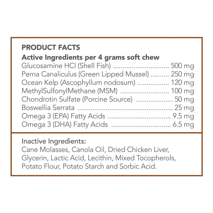 Imagina ver a tu perro saltando de alegría otra vez, jugando sin dolor y moviéndose con facilidad. Nuestra fórmula avanzada, con glucosamina, condroitina y MSM, no solo alivia las molestias, sino que también fortalece las articulaciones desde dentro. Además, está enriquecida con Omega 3 y mejillón de labios verdes para una protección extra. ¡Un solo masticable al día puede marcar la diferencia!