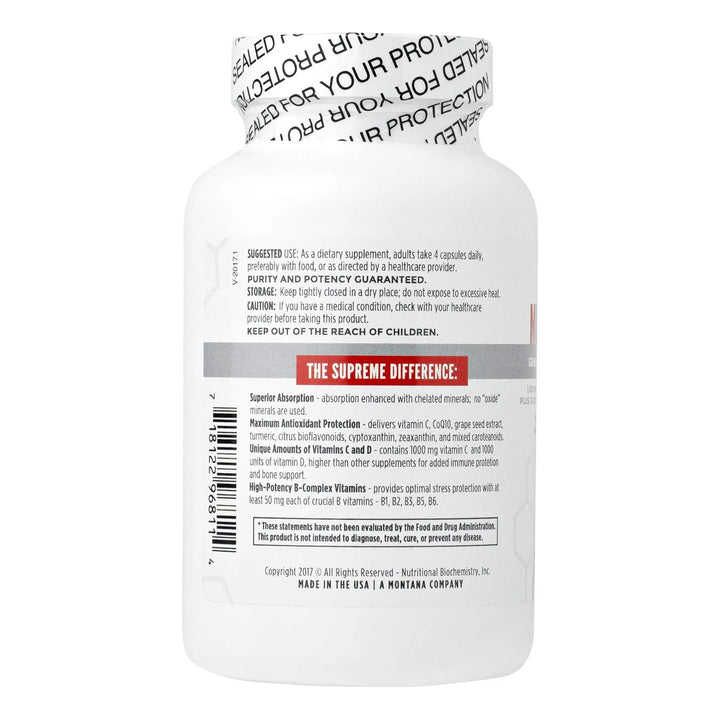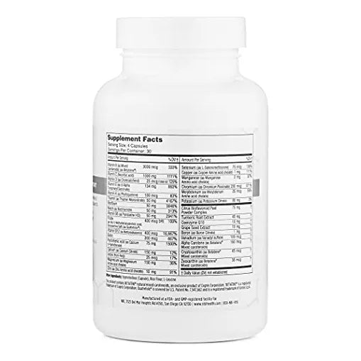 Diseñado para hombres y mujeres que buscan un suplemento completo, este multivitamínico premium combina las vitaminas esenciales A, C, D, E, K, B6 y B12 en una fórmula altamente absorbible. No se trata solo de tomar vitaminas, sino de nutrir tu cuerpo con lo mejor de la naturaleza, respaldado por investigación clínica y fabricado en los Estados Unidos en instalaciones registradas por la FDA.