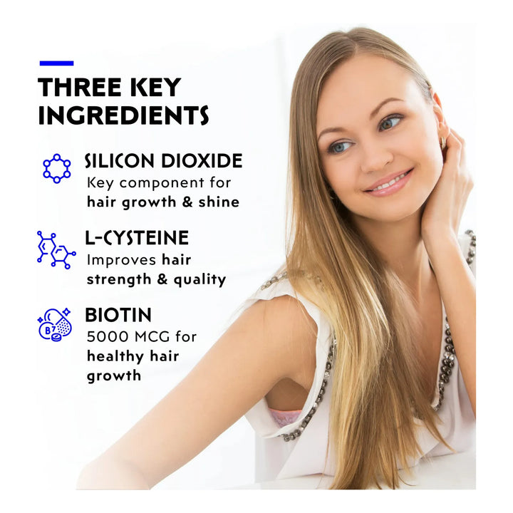 Fórmula de triple acción: Combina biotina, L-cisteína y silicio para atacar múltiples problemas capilares a la vez 💫