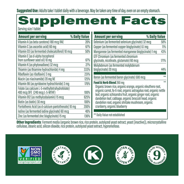 Este multivitamínico de alta calidad no solo te brinda los nutrientes esenciales, sino que también está formulado para una absorción óptima, asegurando que tu cuerpo aproveche al máximo cada tableta. Con ingredientes naturales como arándano, naranja y brócoli, estás obteniendo nutrientes de alimentos reales, no solo vitaminas sintéticas.