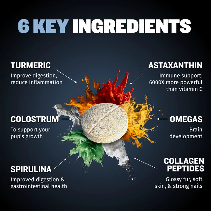 - 🐶 Sabor irresistible: Tabletas masticables que tu mascota adorará, haciendo que la suplementación sea sencilla y divertida.