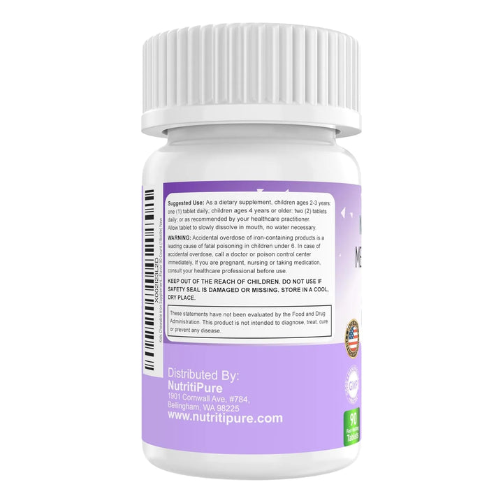 Tabletas Masticables De Hierro Sabor Uva Para Niños 9 Mg