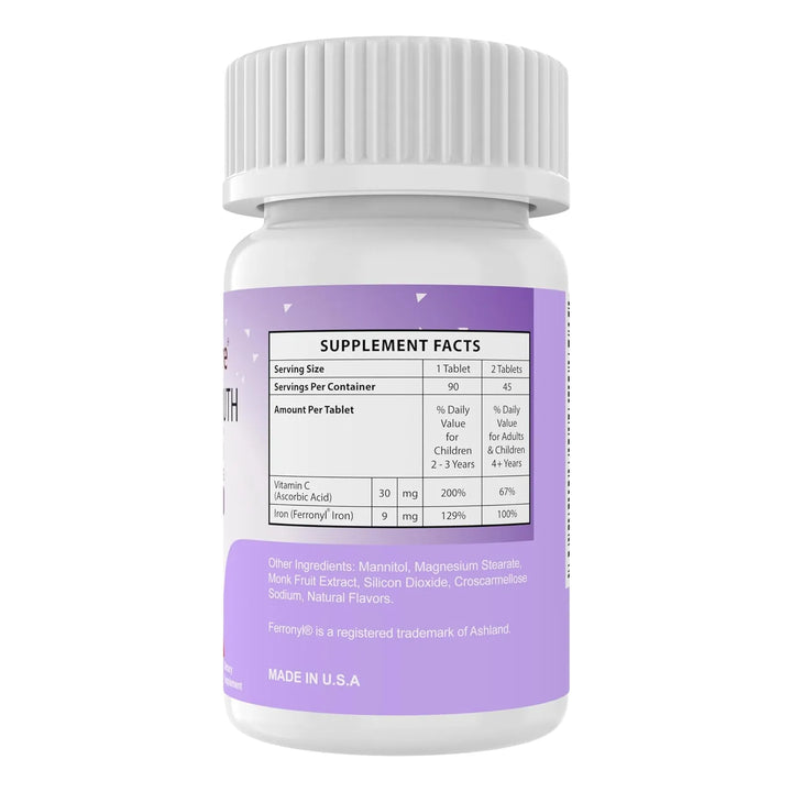Nuestras tabletas están diseñadas para disolverse al instante en la boca, liberando hierro carbonílico Ferronyl® y vitamina C. Esta combinación no solo mejora la absorción del hierro, sino que también reduce los efectos secundarios comunes como náuseas o estreñimiento. El resultado: niños más saludables, con energía y concentración óptimas.