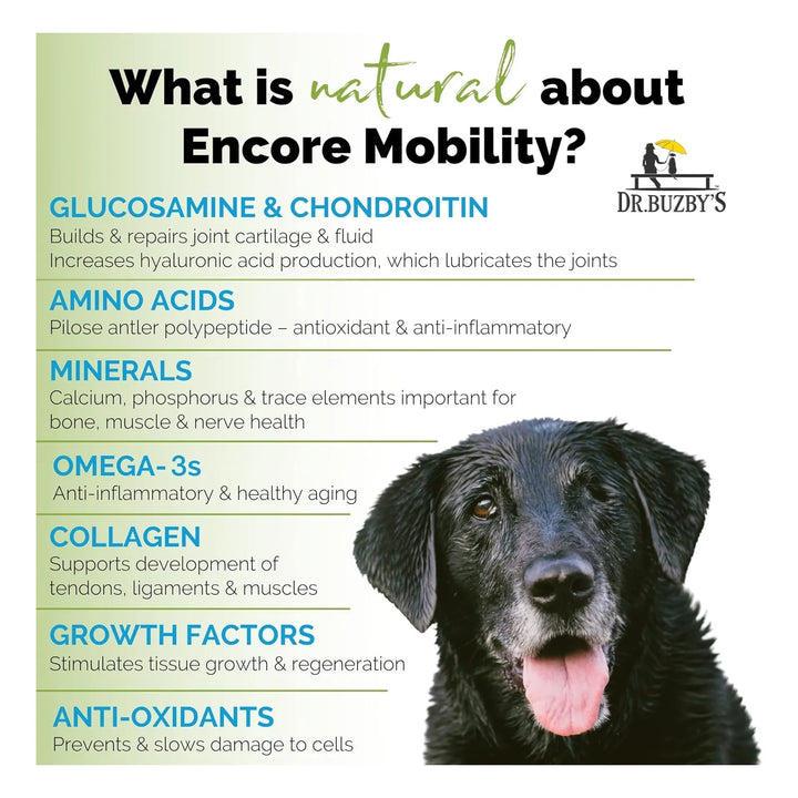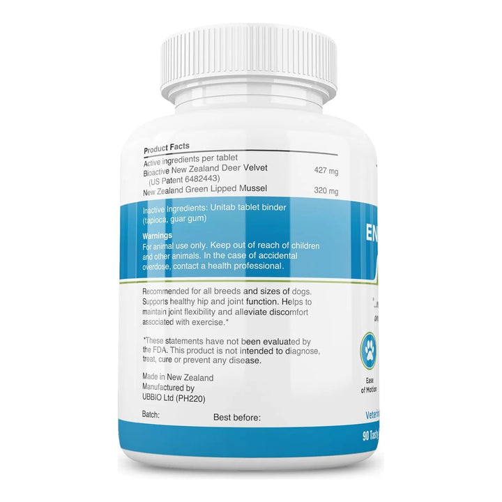 - 🐾 Alivio natural: Ingredientes como el terciopelo de ciervo y el mejillón de labios verdes actúan para disminuir las molestias después del ejercicio.
