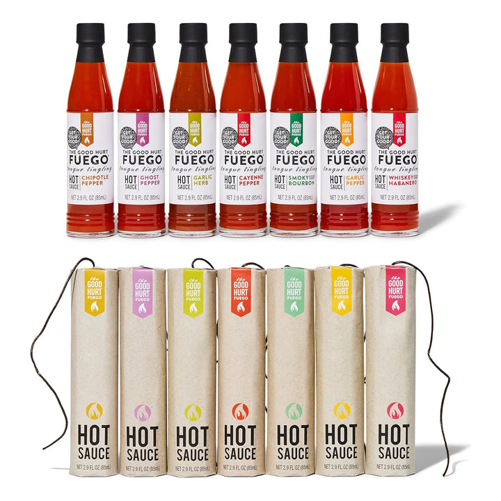 Imagina abrir un paquete y descubrir 7 salsas picantes, cada una con un sabor único que te transporta a rincones exóticos del mundo. Eso es exactamente lo que ofrece The Good Hurt Fuego, un juego de regalo diseñado para los verdaderos amantes del picante. No se trata solo de calor, se trata de experiencia, de sabores que cuentan historias y elevan tus platos favoritos a otro nivel.