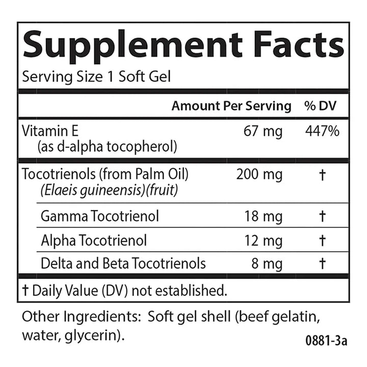 Cada cápsula blanda de 40 mg está diseñada para ser fácil de tragar y rápida de absorber, garantizando que tu cuerpo reciba los nutrientes que necesita sin complicaciones. ¿Sabías que la vitamina E es esencial para combatir el estrés oxidativo y mantener tu piel, cabello y sistema inmunológico en óptimas condiciones? Con este producto, no solo obtienes esos beneficios, sino también la potencia única de los tocotrienoles, conocidos por sus propiedades antioxidantes superiores.