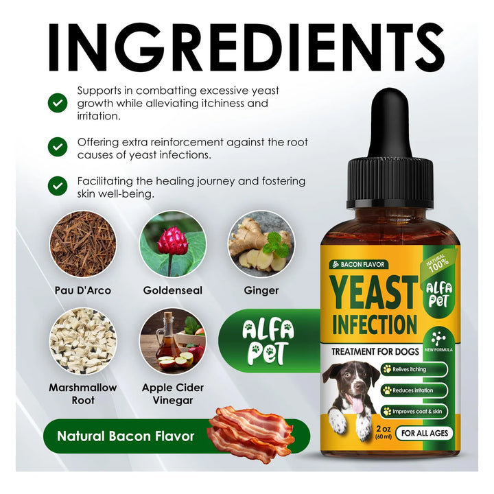 Imagina ver a tu compañero de cuatro patas libre de molestias, disfrutando cada día sin rascarse sin parar. Con ingredientes como Pau D'Arco, diente de león y vinagre de sidra de manzana, este suplemento no solo combate la infección, sino que también fortalece su sistema inmunológico. ¡Y lo mejor de todo? Su delicioso sabor a tocino hará que lo adore desde la primera dosis.