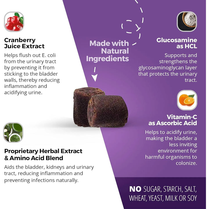 - 💊 Potente cuidado natural: Combate infecciones urinarias sin químicos agresivos, gracias a sus ingredientes como extracto de arándano y vitamina C.