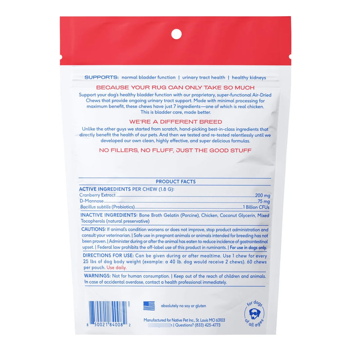 Este suplemento, respaldado por veterinarios, combina el poder del arándano, probióticos y D-Manosa para crear una barrera protectora contra bacterias dañinas. Olvídate de las pastillas difíciles de administrar: estos masticables son tan deliciosos que tu mascota los pedirá como premio. Además, al ser libre de granos, gluten y rellenos artificiales, es seguro para estómagos sensibles.
