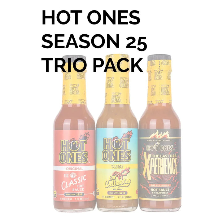 ¿Eres de los que busca emociones fuertes incluso en la comida? El Trío De Salsas Picantes Hot Ones Temporada 25 es tu oportunidad para vivir una experiencia única, llena de sabores atrevidos y calor intenso. Inspirado en el famoso programa Hot Ones, este paquete te lleva a un viaje desde lo suave hasta lo increíblemente picante, perfecto para aquellos que no temen al desafío.