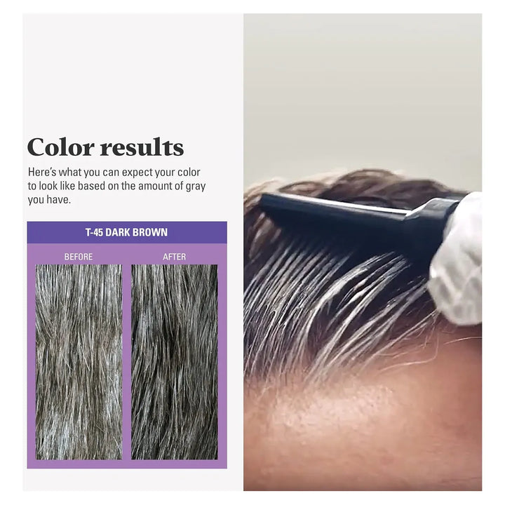 Touch Of Gray Ju actúa penetrando suavemente en cada hebra de cabello, depositando pigmentos que cubren las canas y devuelven el color uniforme. Su fórmula avanzada se adapta a tu tono natural, creando un resultado perfecto y sin parches.