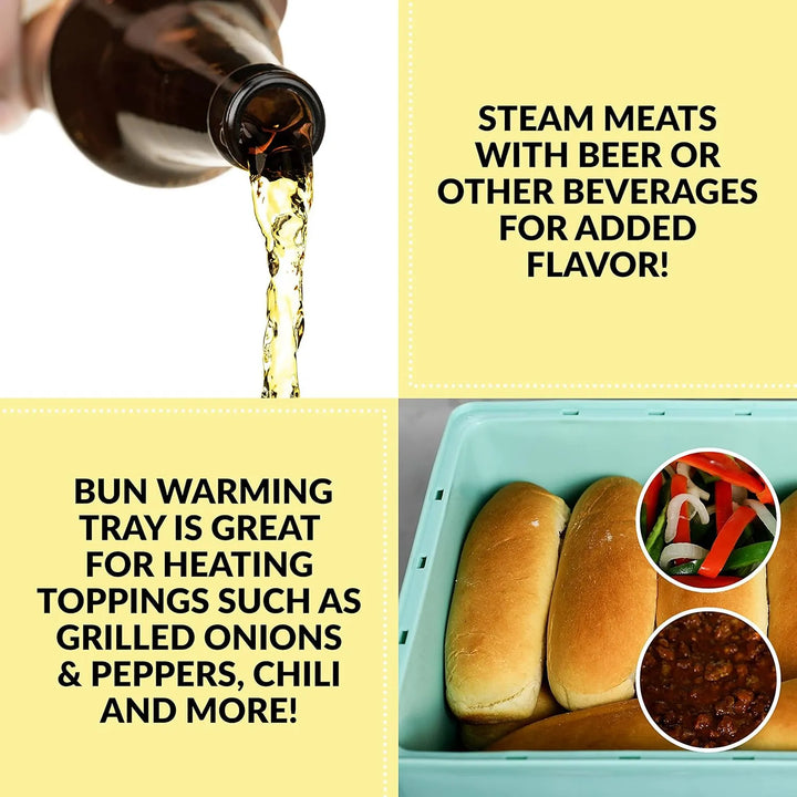 - Bandeja de calentamiento integrada: Mantiene tus bollos calientes y listos para servir. 🌭