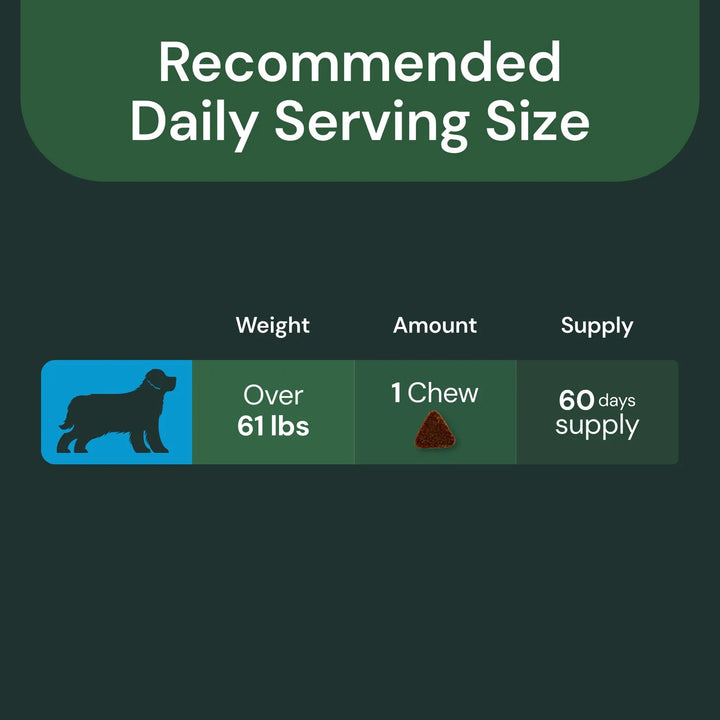 El sello de calidad NASC y la fabricación en instalaciones certificadas SQF garantizan que tu perro recibe exactamente lo que su cuerpo necesita, sin ingredientes cuestionables. Esto no es solo un suplemento, es una promesa de bienestar para tu mejor amigo.