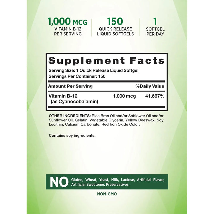 La Vitamina B12 es esencial para convertir los alimentos en energía, apoyar la función nerviosa y la producción de glóbulos rojos. Nuestras cápsulas blandas liberan rápidamente los nutrientes en tu sistema, optimizando su absorción para que notes la diferencia desde el primer día.