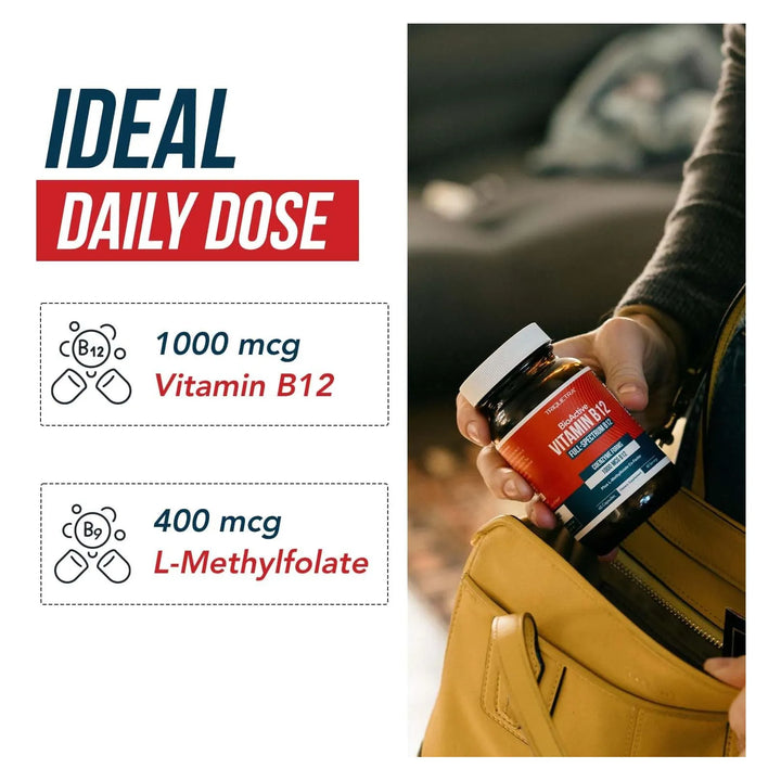 - Contiene 1000 mcg de B12 trifásica + 400 mcg de L-metilfolato para máxima eficacia 💊