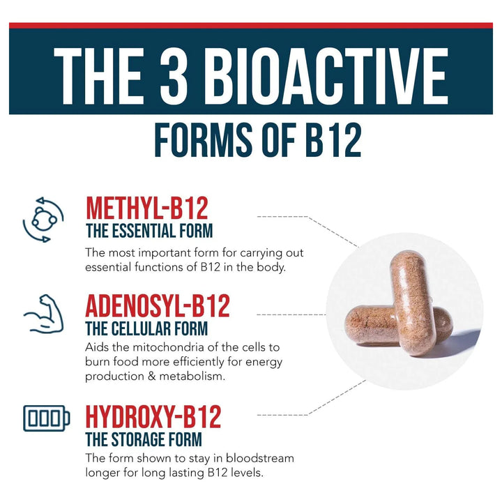 - ⚡ Energía que dura: Las tres formas de B12 trabajan juntas para apoyar tu metabolismo y reducir la fatiga. ¡Despídete del agotamiento!