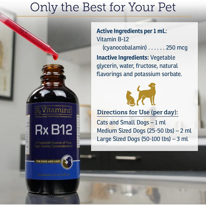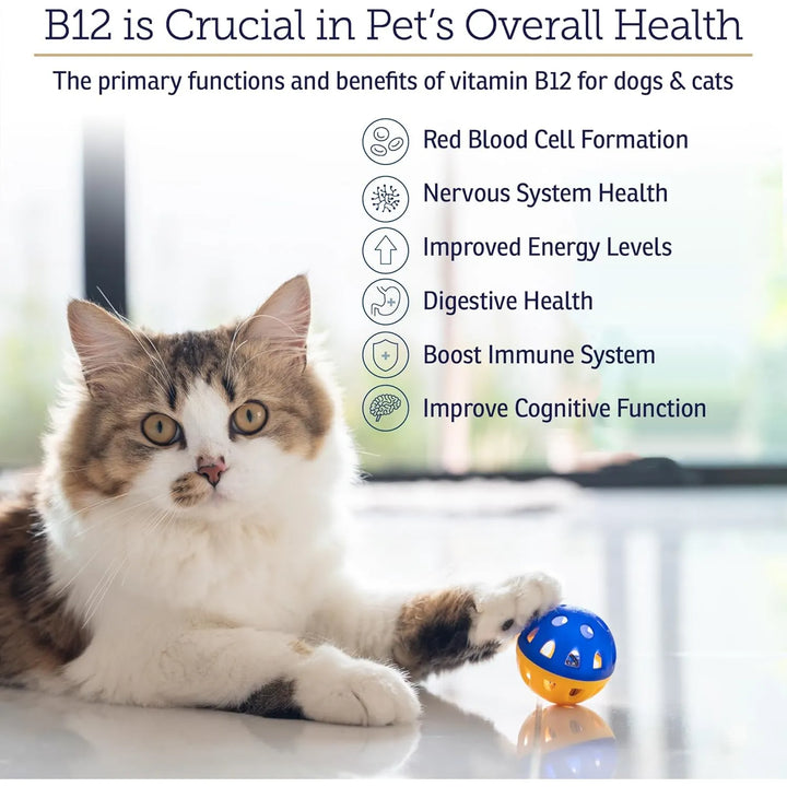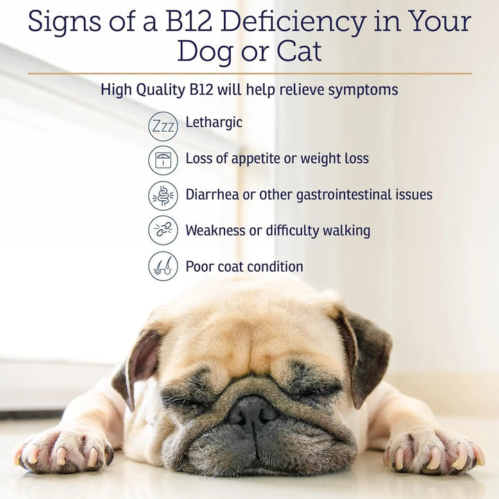 ¿Te preocupa ver a tu mascota con poca energía, problemas digestivos o dificultades para absorber nutrientes? La vitamina B12 es esencial para su bienestar, y ahora puedes brindársela de la manera más fácil y efectiva. Nuestro suplemento líquido de B12 pura está especialmente formulado para perros y gatos, ayudando a mejorar su digestión, metabolismo y función nerviosa. ¡Dale a tu compañero peludo la vitalidad que se merece!