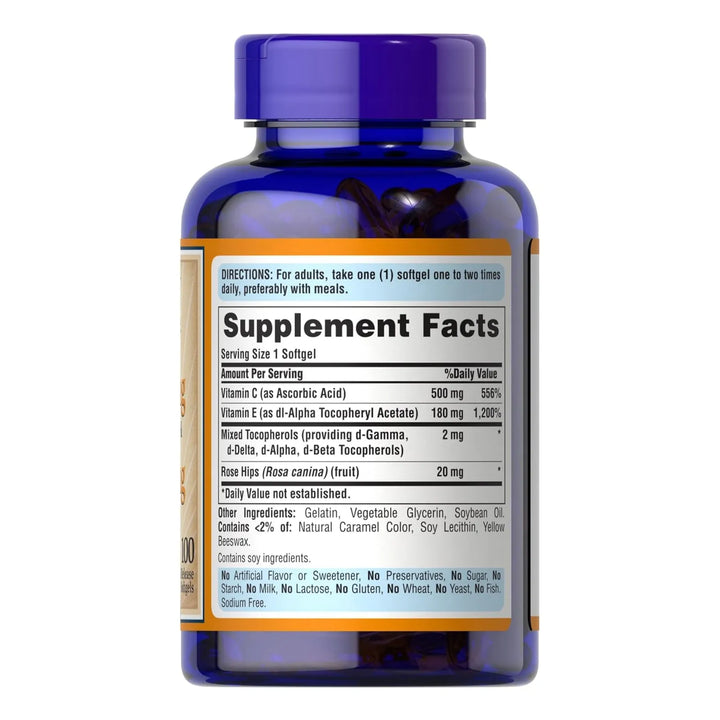 Imagina un suplemento que no solo fortalece tu sistema inmunológico, sino que también cuida tu piel y tu corazón. La Vitamina C 500 mg con Escaramujos y Vitamina E 400 de Puritan's Pride es ese compañero esencial que tu cuerpo necesita para mantenerse fuerte y saludable. Con ingredientes de alta calidad importados desde Estados Unidos, este producto está diseñado para quienes buscan un bienestar integral sin complicaciones.