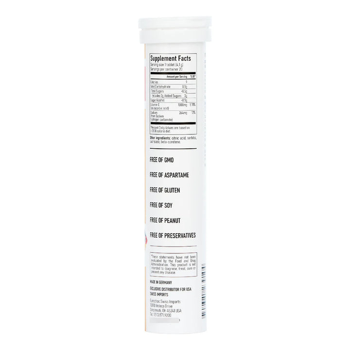 La Vitamina C Efervescente 1000 Mg actúa proporcionando un rápido y efectivo aporte de vitamina C a tu organismo, esencial para el funcionamiento normal del sistema inmunológico y la reducción del cansancio y la fatiga. Su formato efervescente asegura una rápida absorción, lo que significa que tu cuerpo puede empezar a beneficiarse de sus propiedades casi inmediatamente.