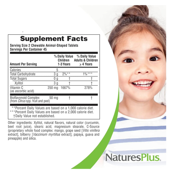 ¿Buscas una forma deliciosa y efectiva de fortalecer el sistema inmunológico de tus hijos mientras les encanta cada bocado? La Vitamina C Masticable para Niños de NaturesPlus es la solución perfecta. Con un sabor natural a naranja y divertidas formas de animales, este suplemento no solo es nutritivo, sino también irresistible para los más pequeños.