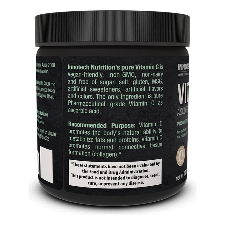 ¿Estás buscando una forma fácil y efectiva de fortalecer tu sistema inmunológico y mantener tu salud en óptimas condiciones? La Vitamina C Pura en Polvo de Innotech Nutrition es la solución perfecta para ti. Con 400 gramos de ácido ascórbico de alta calidad, este producto te ofrece un suministro conveniente y flexible para toda la familia, ayudándote a mantenerte saludable y lleno de energía.