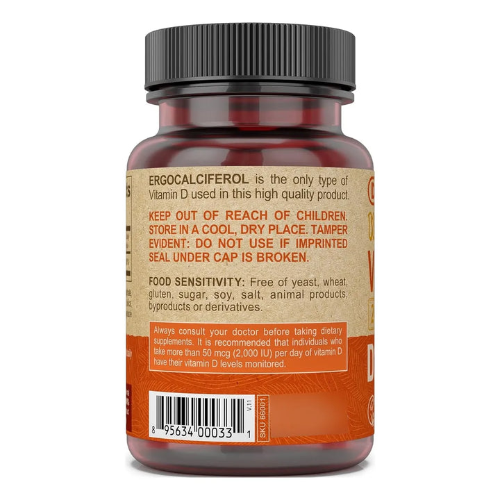 Vitamina D2 Vegana 60 Mcg 2400 UI – Suplemento de Ergocalciferol para una Salud Óptima