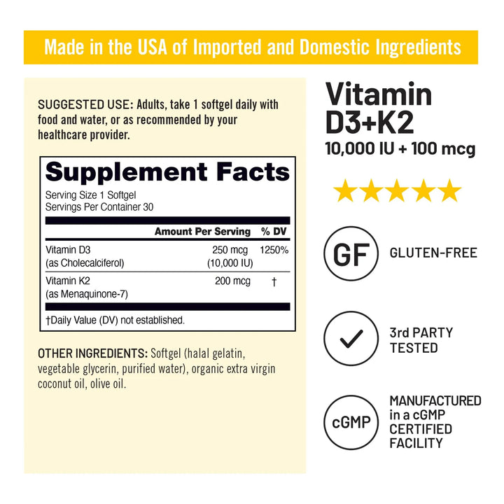 ¿Sientes que tu energía no es la misma de antes? ¿Te preocupa la salud de tus huesos y corazón? Descubre cómo la vitamina D3 10,000 UI con K2 MK-7 200 mcg puede ser la solución que estás buscando. Este poderoso suplemento no solo fortalece tus huesos, sino que también apoya tu sistema inmunológico y cardiovascular, todo en una sola cápsula.