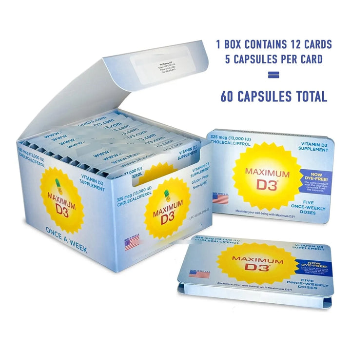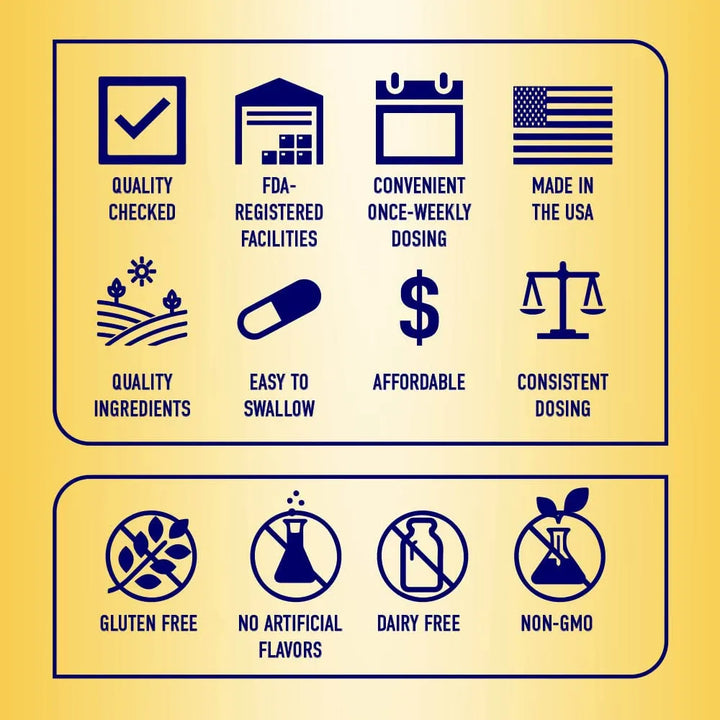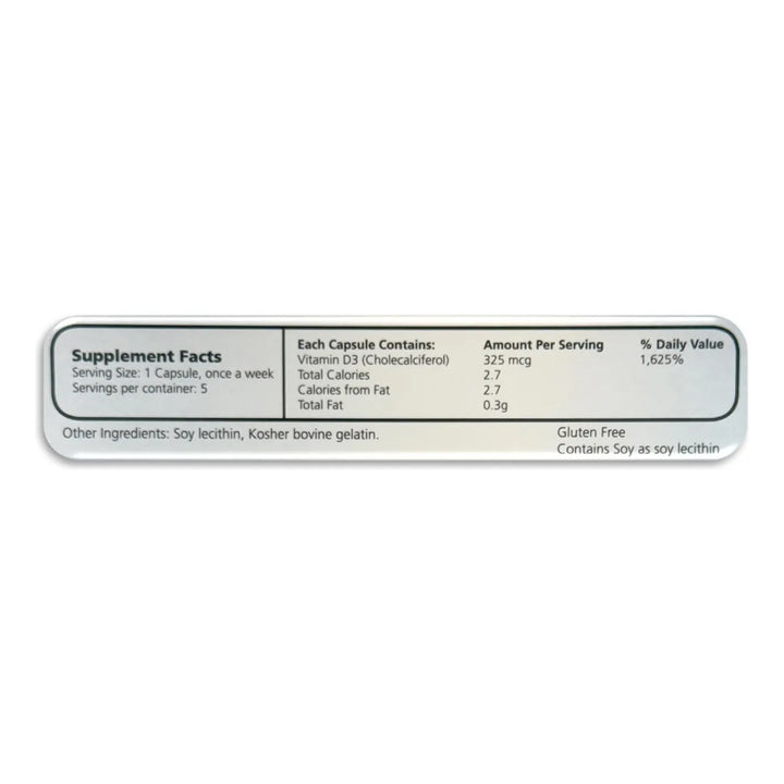 La vitamina D3 es esencial para absorber el calcio, mantener huesos fuertes y apoyar tu sistema inmunológico. Pero no todos los suplementos son iguales. Nuestra fórmula de alta potencia está diseñada para ofrecerte el máximo beneficio con la mínima dosis semanal. Sin OMG, sin gluten y fabricada en Estados Unidos, garantizando calidad y seguridad en cada cápsula.
