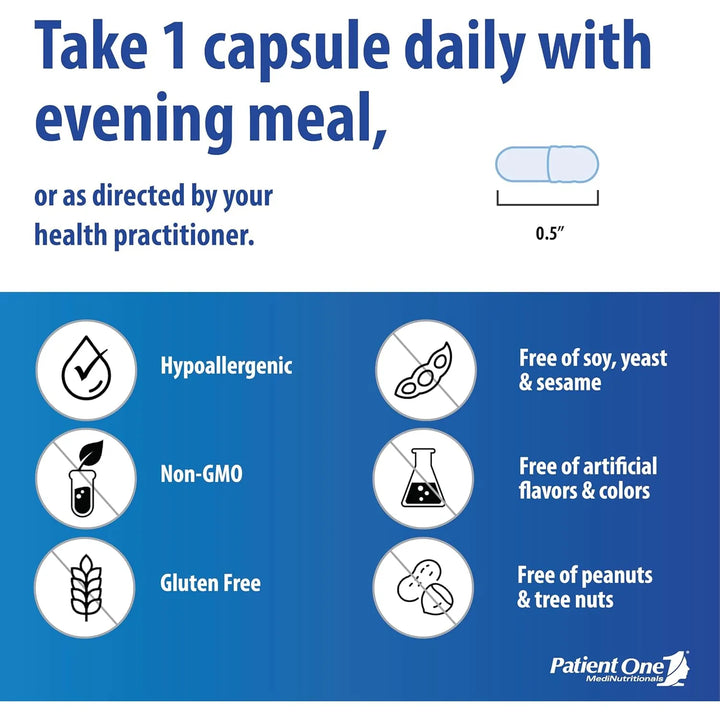 - Toma una cápsula al día, preferiblemente con una comida para mejorar la absorción.
