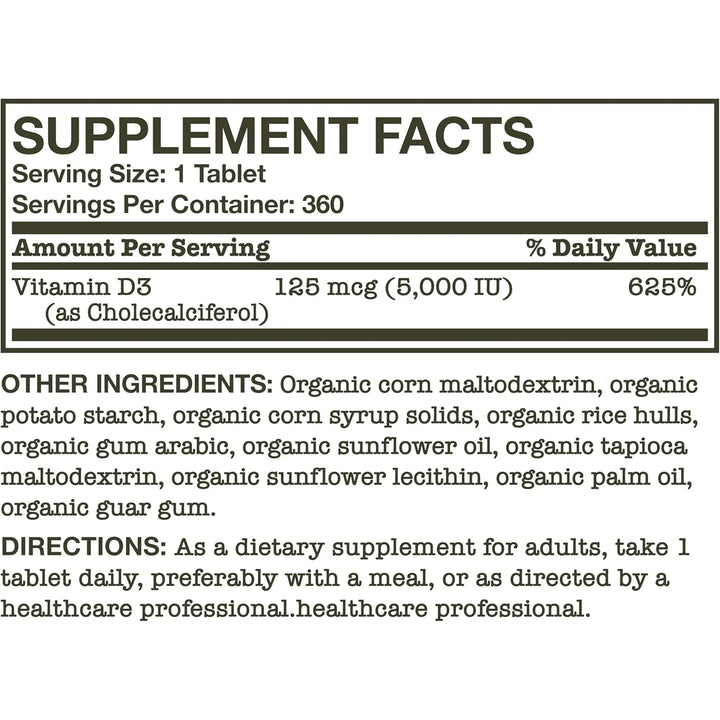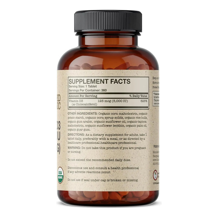 Vitamina D3 5000 UI: Refuerza Tu Inmunidad y Huesos con Calidad Orgánica