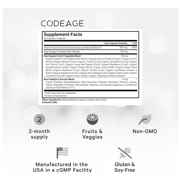 La vitamina D3 se extrae de Saccharomyces cerevisiae, asegurando una absorción rápida y efectiva. Al combinarse con probióticos y enzimas digestivas, optimiza tu metabolismo y fortalece tu microbiota intestinal. Además, los Omega-9 y la Chlorella potencian sus efectos, brindándote un bienestar integral.