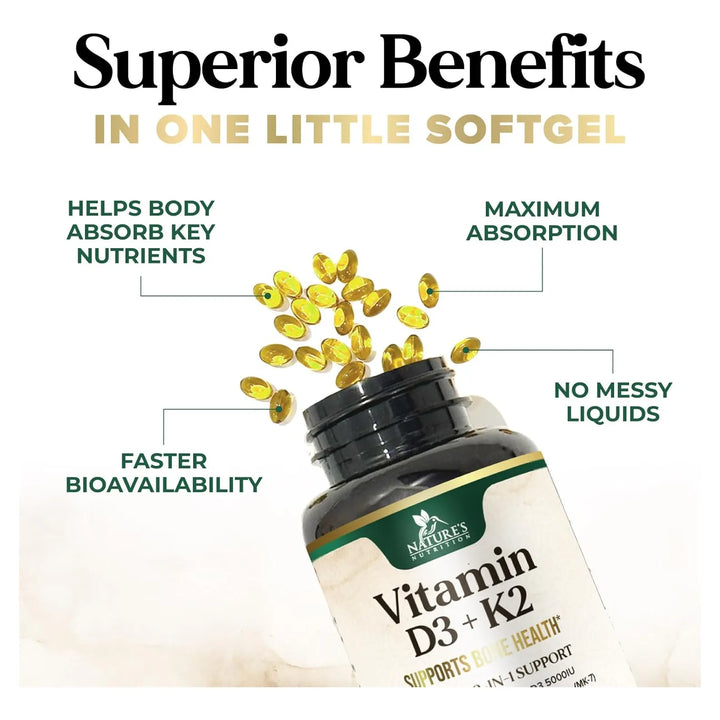 - Fórmula 2 en 1 de Vitamina D3 y K2 (MK-7) para una sinergia perfecta 🌟