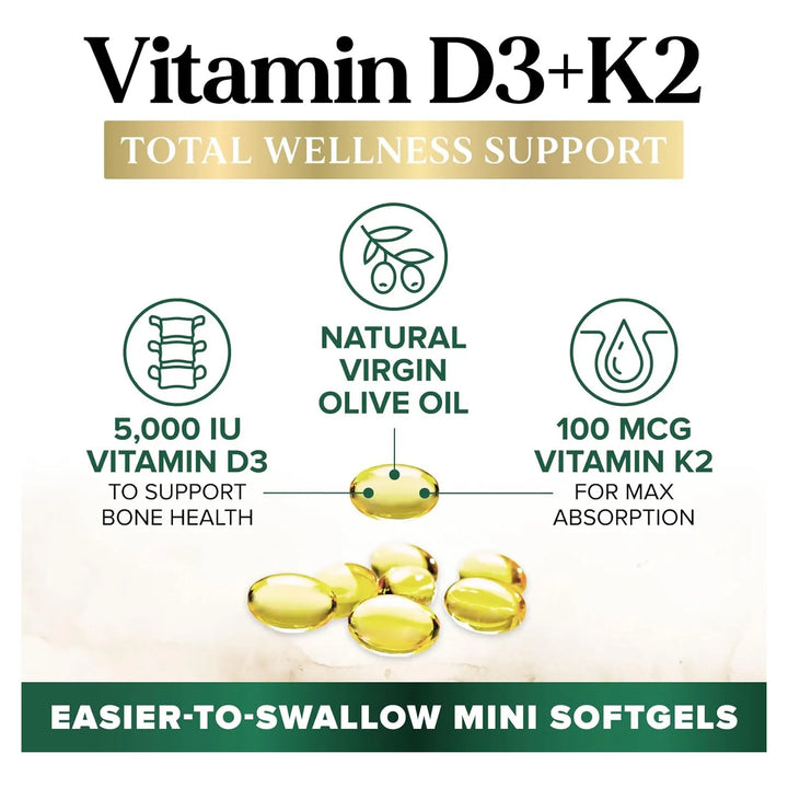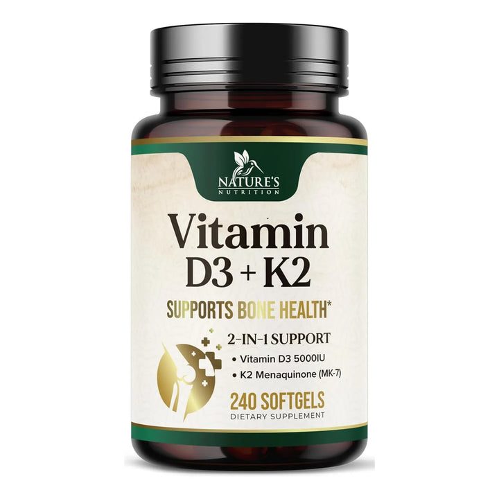 - 5000 UI de Vitamina D3 y 100 mcg de K2 por cápsula, dosificación óptima para adultos 💊