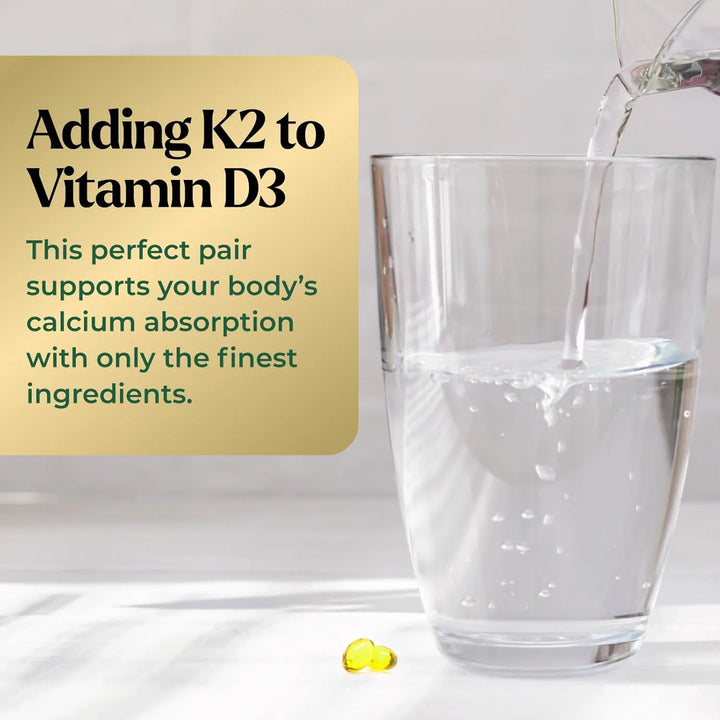 La vitamina D3 activa la absorción de calcio, mientras que la K2 dirige este mineral directamente a los huesos, evitando que se acumule en arterias o tejidos blandos. Juntas, trabajan para fortalecer tu sistema inmunológico, proteger tu corazón y mantener tus huesos fuertes.