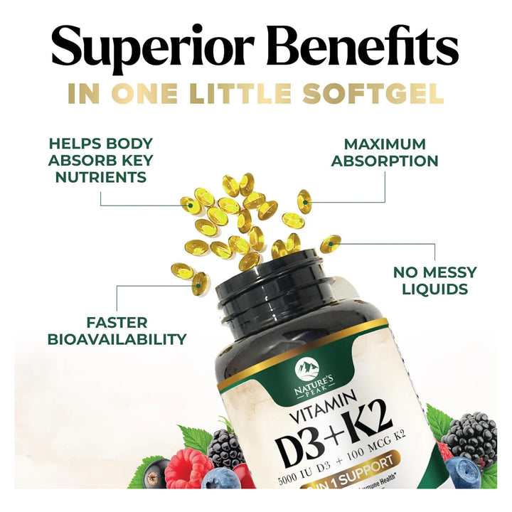¿Sientes que tu sistema inmunológico necesita un refuerzo? ¿Te preocupa la salud de tus huesos y corazón? Descubre la fórmula revolucionaria que combina 5000 UI de vitamina D3 y 100 mcg de vitamina K2 en cápsulas blandas fáciles de tragar. Este suplemento premium no solo apoya tu bienestar general, sino que te ayuda a dirigir el calcio exactamente donde tu cuerpo más lo necesita: tus huesos.