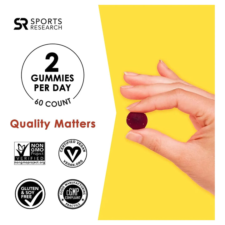 - Toma 2 gomitas al día, preferiblemente con una comida.