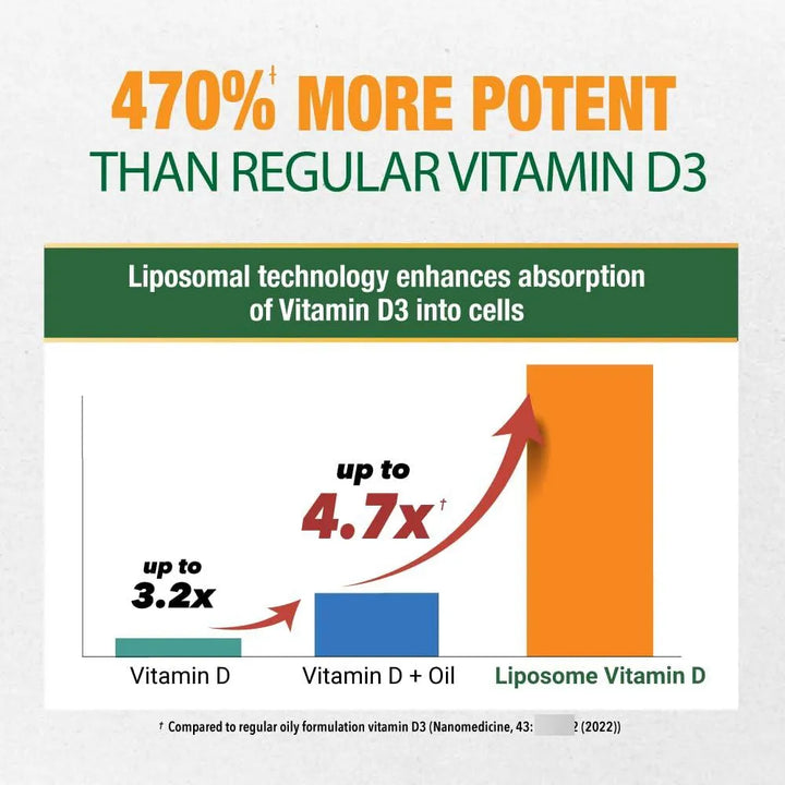 ¿Sientes que tu energía no es la misma? ¿Te preocupa tu sistema inmunológico o la salud de tus huesos? Descubre la Vitamina D3 Liposomal, una fórmula revolucionaria diseñada para brindarte hasta un 470% más de biodisponibilidad que las vitaminas tradicionales. Imagina nutrir tu cuerpo con la misma vitamina que obtienes del sol, pero con una potencia y absorción que supera cualquier otra opción en el mercado.