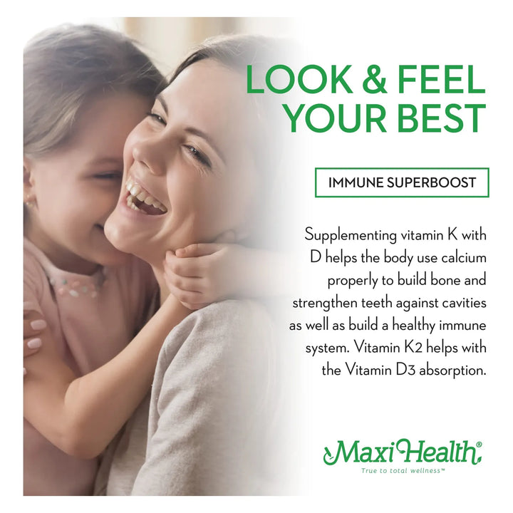 - 🦷 Huesos y Dientes Más Fuertes: La combinación D3 + K2 MK-7 asegura que el calcio se dirija donde más lo necesitas, fortaleciendo tu estructura ósea.