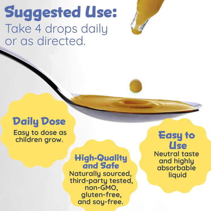 Imagina poder fortalecer la salud ósea de tu hijo mientras promueves su capacidad de aprendizaje y memoria. Este producto no solo ofrece beneficios inmediatos, sino que también sienta las bases para un futuro saludable. Cada gota contiene 100 UI de vitamina D3, asegurando una absorción rápida y efectiva.