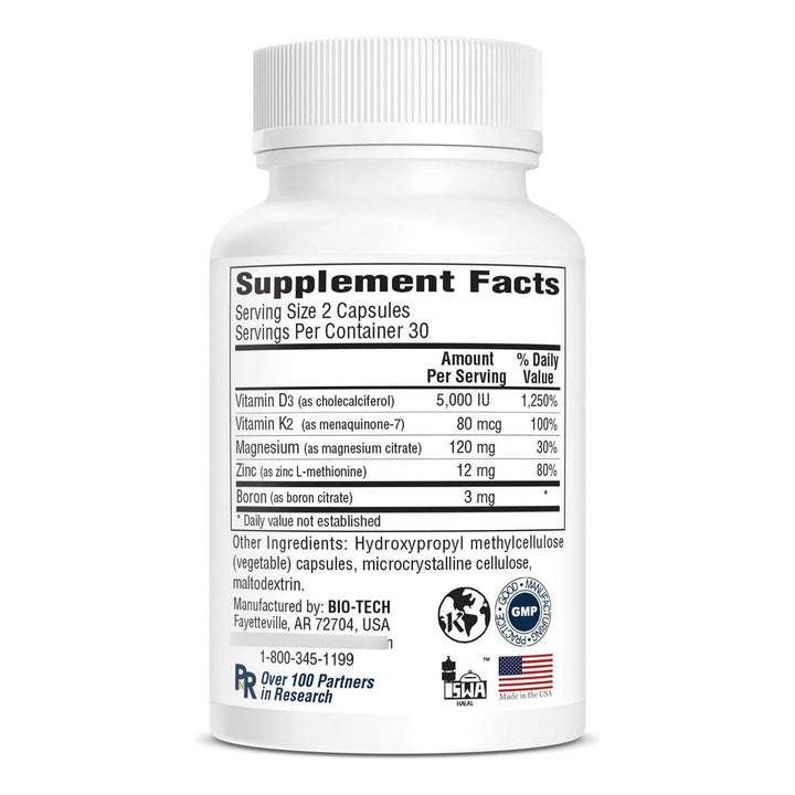 Imagina despertar cada día con energía renovada, sabiendo que tus huesos están más fuertes que nunca y que tu cuerpo está protegido contra amenazas externas. Esta poderosa cápsula combina 1000 UI de vitamina D3 con magnesio, zinc, boro y vitamina K2, creando un cóctel nutricional que trabaja en sinergia para optimizar tu salud cardiovascular, neuromuscular y ósea.